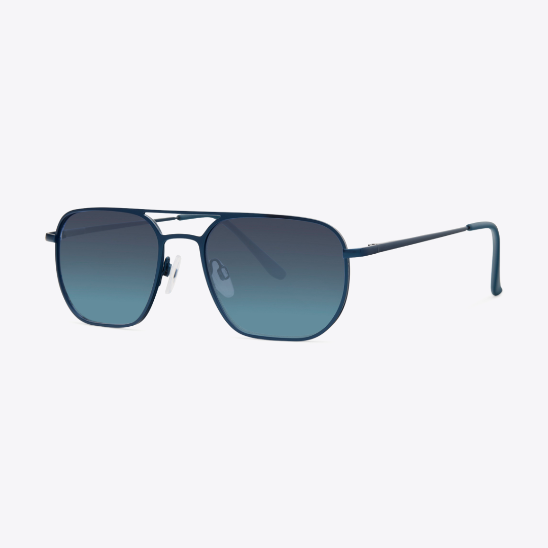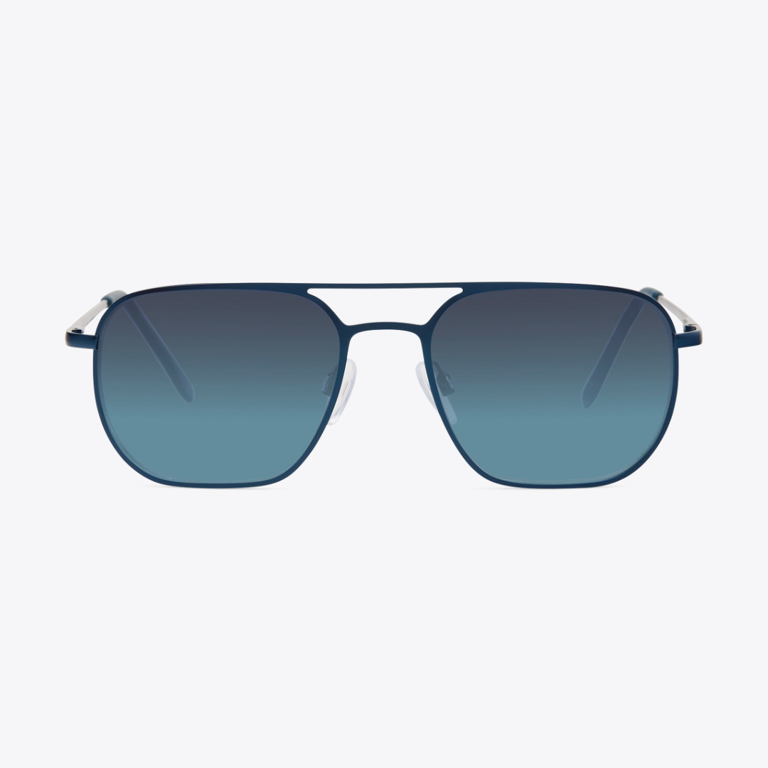 Sleek and modern, these navigator sunglasses feature matte navy blue metal frames with gradient lenses.