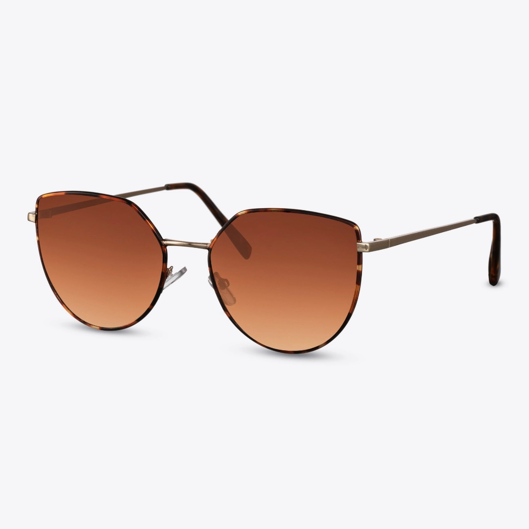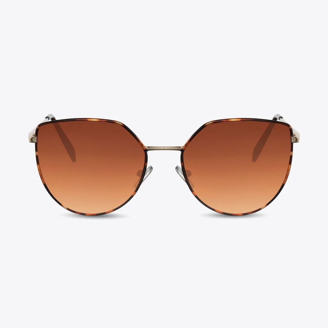 Chic and beautifully oversized, these geometric sunglasses feature sleek metal frames with tortoiseshell accents and warm brown gradient lenses.